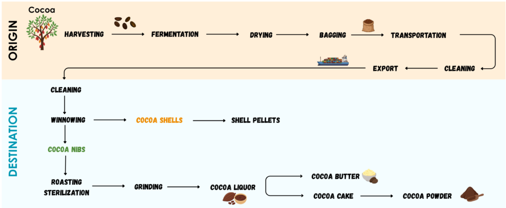 In order to be used in the production of cocoa and chocolate products, cocoa beans are processed into cocoa mass (or liquor).